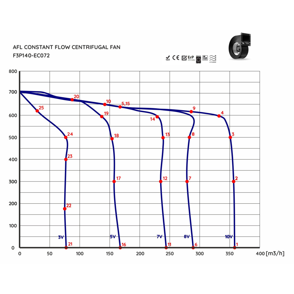 Jsou vybaveny EC motorem s integrovanou elektronikou, která automaticky udržuje konstantní průtok vzduchu bez ohledu na měnící se tlakové podmínky v soustavě.