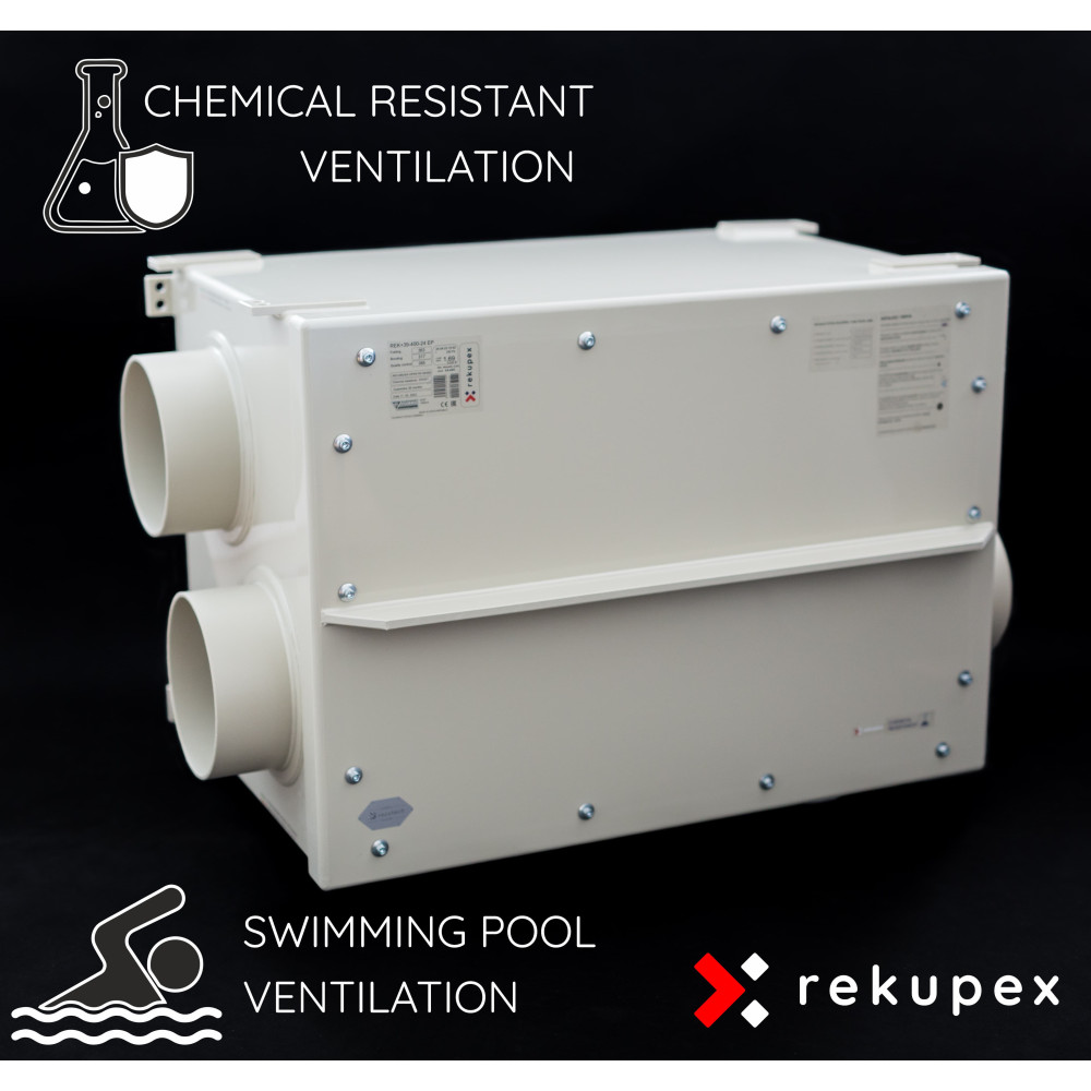 RECUBOX® X-POOL er en topmoderne , kemisk resistent genvindingsenhed designet til omfattende luftgenvinding i svømmebassiner , wellnesscentre, saunaer, laboratorier og industriområder med let aggressive kemikalier.