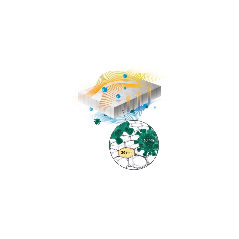 - Membrana propušta vodenu paru, ali blokira prolaz bioloških onečišćujućih tvari, virusa, plinova i stranih mirisa.