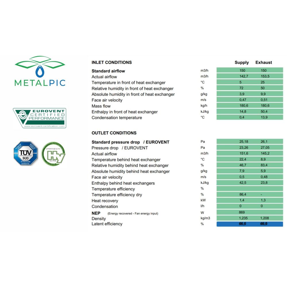 La valutazione REKUPEX indicata si basa sulla nostra lunga esperienza pratica nella progettazione, vendita e integrazione di scambiatori entalpici in diversi tipi di unità di ventilazione.