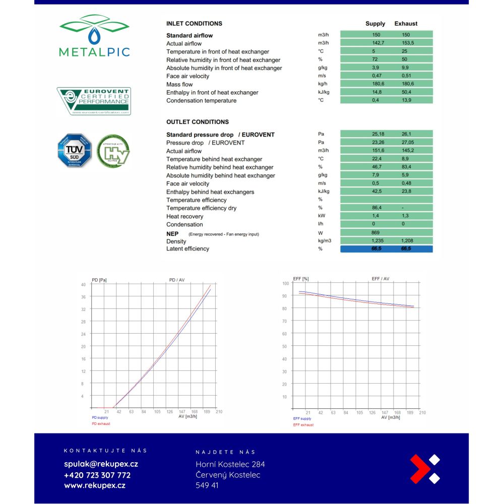 - Certifikácia Eurovent, hygienická certifikácia podľa VDI 6022 a Klasifikácia reakcie na oheň podľa EN 13501-1